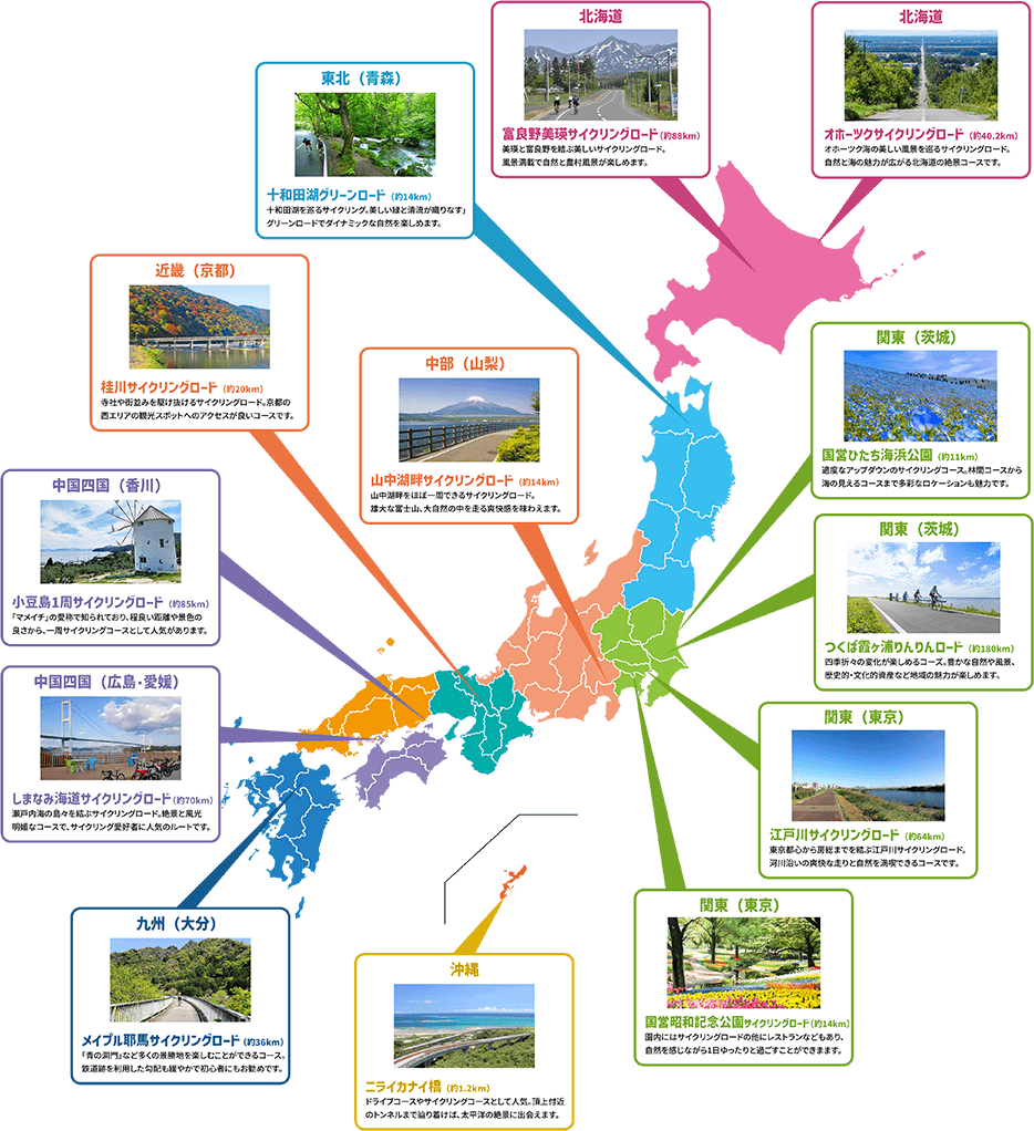 全国に広がるサイクリングロードを、ぜひMy E-bikeでお楽しみください。